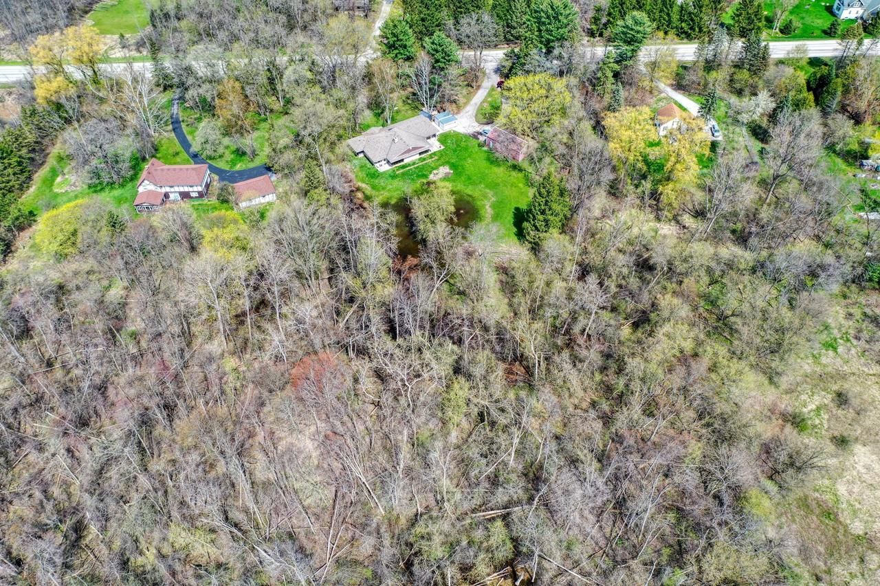 Rare opportunity in Town of Cedarburg on 5 wooded acres. 3046 Square foot 3BR/1.5BA Lannon stone ranch home features walls of windows, NFP and Bamboo flooring in great room. Kitchen with center island wood cabinets and pantry. Large bedrooms. Remodeled main bath is a standout with heated flooring, dual sink vanity with soaking tub and tiled walk in shower. Additional 1/2 BA, lots of storage in the large bonus room & utility room. In floor radiant heat. Plenty of room for your toys in the Pole building and sheds. Embrace your wooded sanctuary with the abundance of wildlife including; ducks, turkey and deer.Bow hunting allowed. Bring your creativity and make this property yours