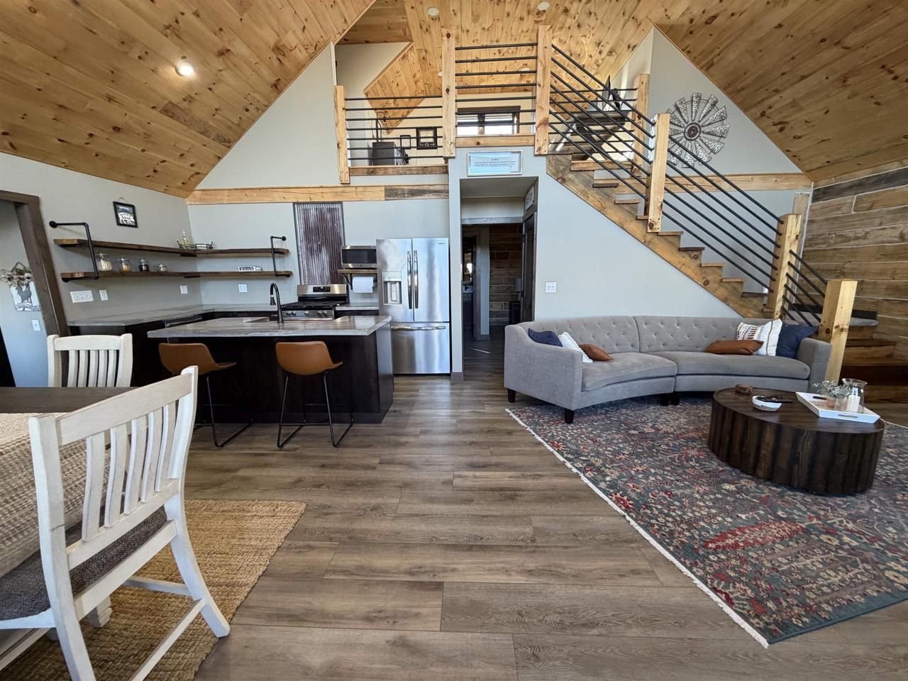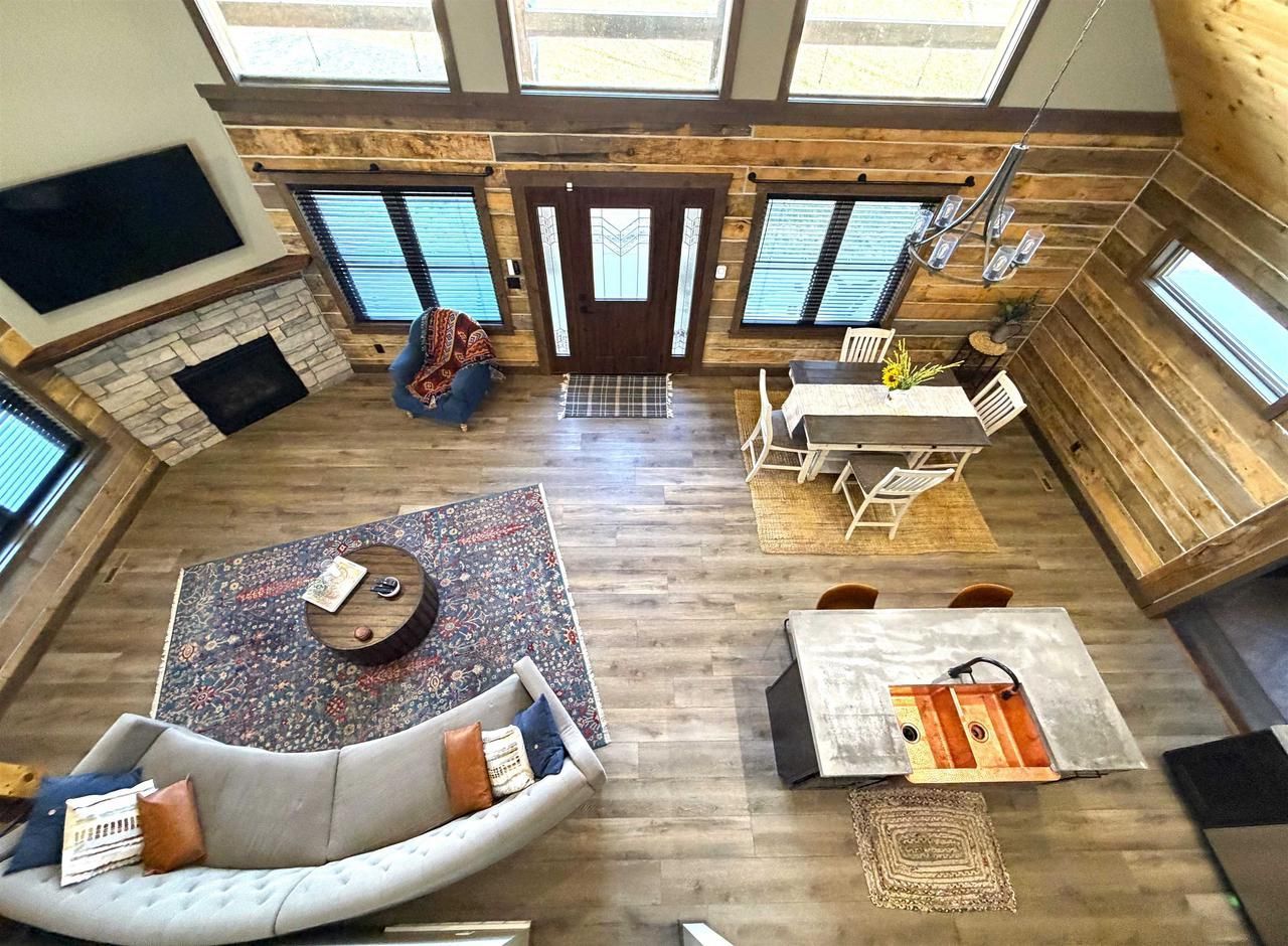 Beautiful custom-built log home set on 3.14 acres perched on a bluff near De Soto. Built in 2024, this 3 bedroom, 2.5 bath home showcases quality craftsmanship and warm wood character throughout. The open-concept main level features vaulted ceilings, large windows that fill the home with natural light, and a beautiful stone fireplace anchoring the living room. The kitchen highlights Amish-crafted cabinetry, concrete countertops, a center island, and a spacious pantry for storage. The main floor primary suite offers a walk-in closet and private bath with walk-in shower. Upstairs you'll find two additional bedrooms, a full bath, a loft area ideal for an office or sitting space, and two extra closets. Step outside to enjoy a stamped concrete patio with pergola, a firepit area, and a cowboy pool?perfect for relaxing or entertaining. Attached 2-car garage and a peaceful blufftop setting just minutes from the Mississippi River and the village of De Soto.