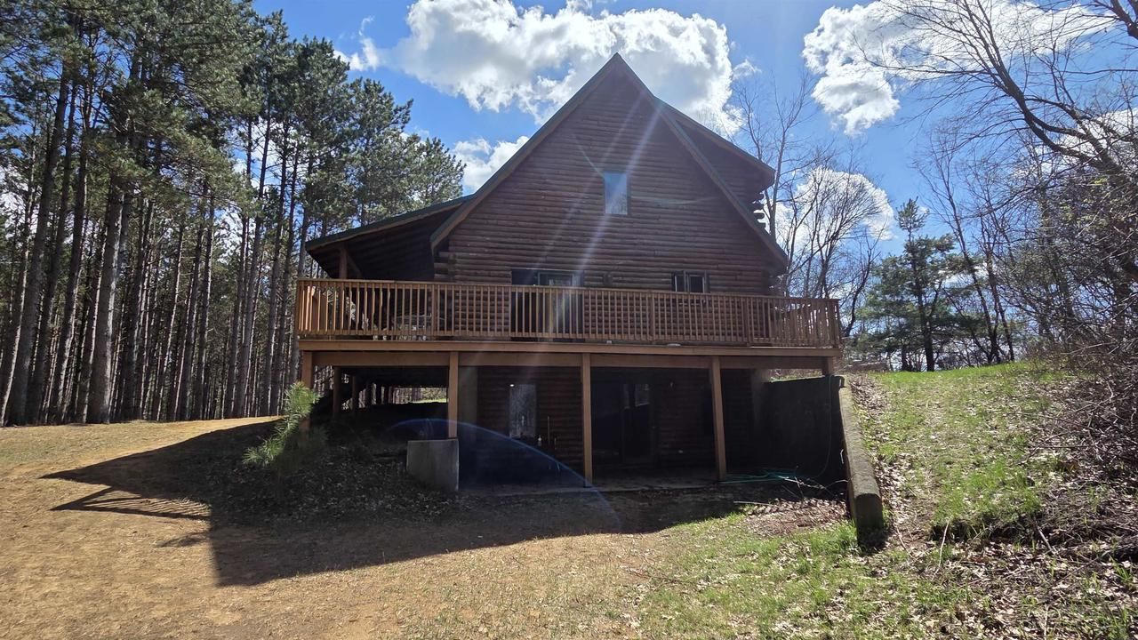 Beautifully secluded half log home located on 30 mature pine acres just north of Westfield. Enjoy the outdoors from the large two sided deck. Trails throughout the property. Large detached 3 car garage as well as a 30x 40 pole shed with electric and concrete. The exposed walkout basement has room for entertaining. Main level of home is open concept with exposed beams. Come and see what this property is all about as it has many wonderful things to offer.
